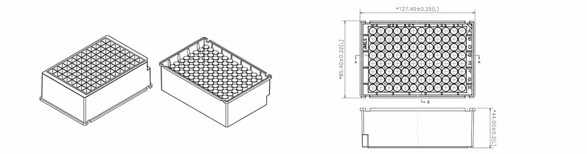 96淺孔板-V型0.2mL | 4個(gè)/袋,72袋/箱 | 127*85*15 | 透明 | PP |